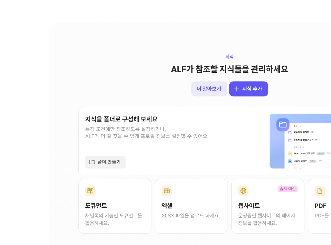 교환·불량·반품 같은 처리성 문의까지 자동화되면서, 인입 문의의 80.9%를 ALF가 처리해주며, 상담사로 연결되는 건이 눈에 띄게 줄었습니다. 믿고 맡길 수 있고, 그만큼 저희는 고객 만족을 더 높이는 일에 시간을 쓸 수 있게 되었습니다.